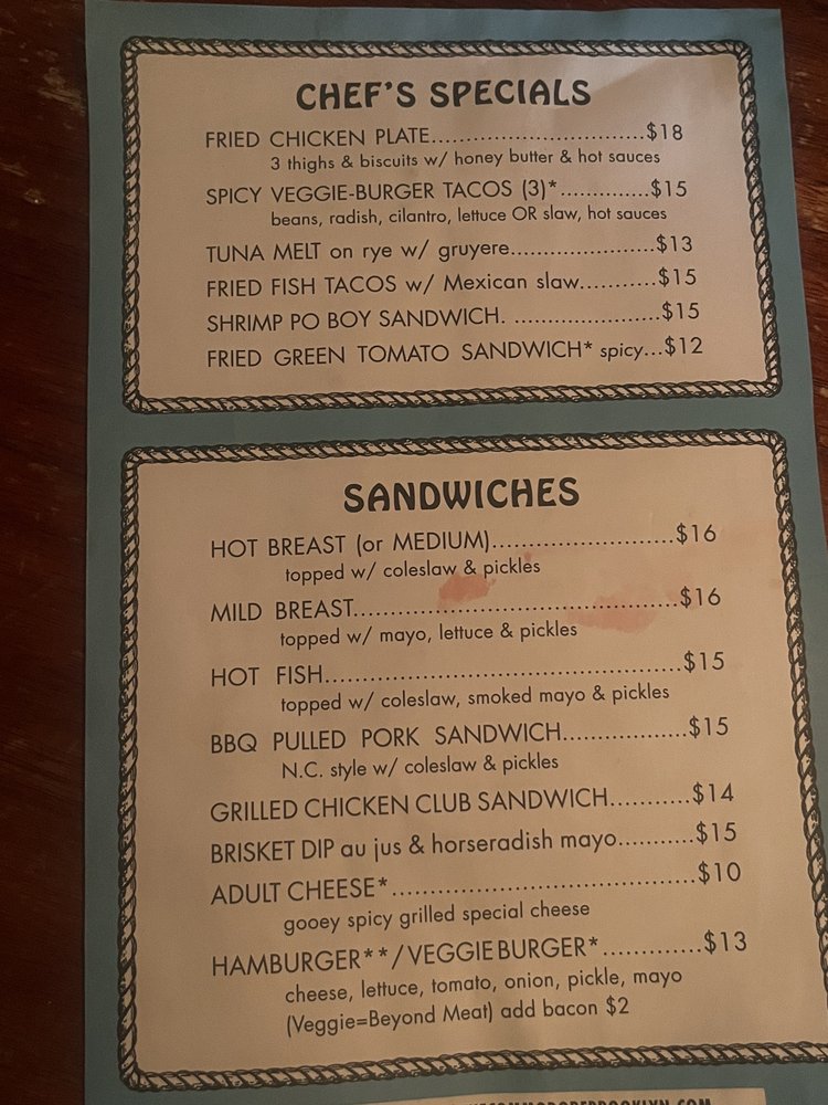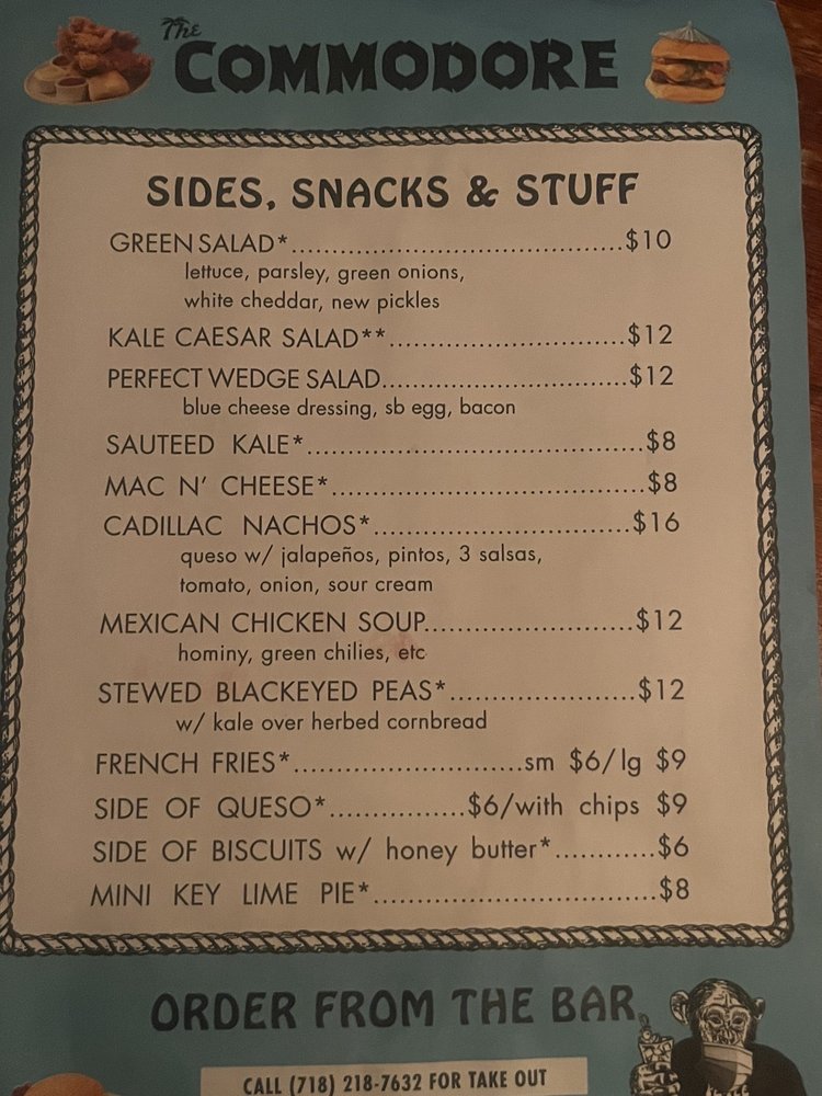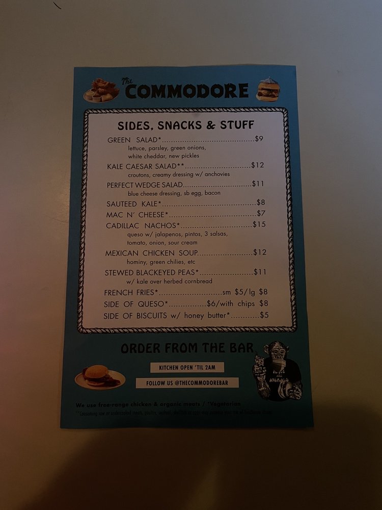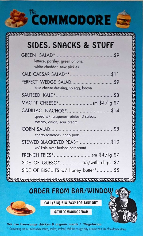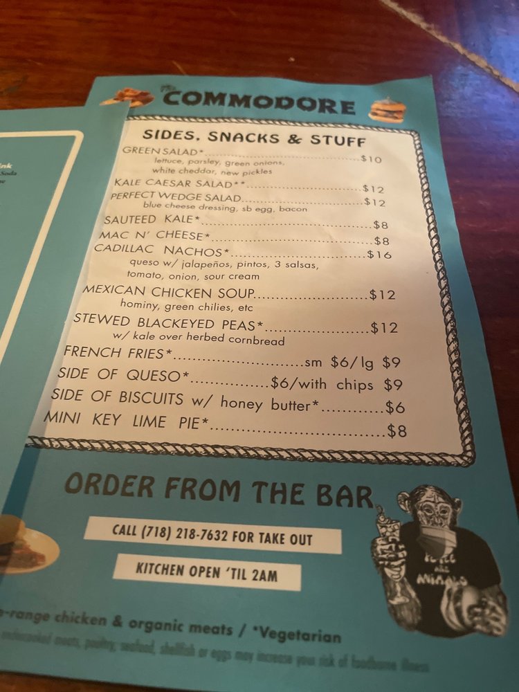 The Commodore in Brooklyn, NY, is a must-visit spot for American-style bar food. With a range of sandwiches like the Hot Breast, Fish, and Adult Cheese options, there is something for everyone. The Chef's Specials, including the Fried Chicken Plate and Shrimp Po Boy Sandwich, are juicy and flavorful. The sides like Cadillac Nachos and Kale Caesar Salad offer a great balance to your meal. Customers rave about the friendly service and delicious cocktails, making it a perfect spot for late-night bites or casual dining. The casual dive bar atmosphere adds to the relaxed dining experience. Don't miss out on trying the iconic fried chicken and exploring their creative drink menu at The Commodore.