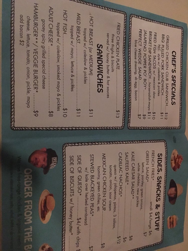 3 thighs and biscuits. Served with honey butter and hot sauces.